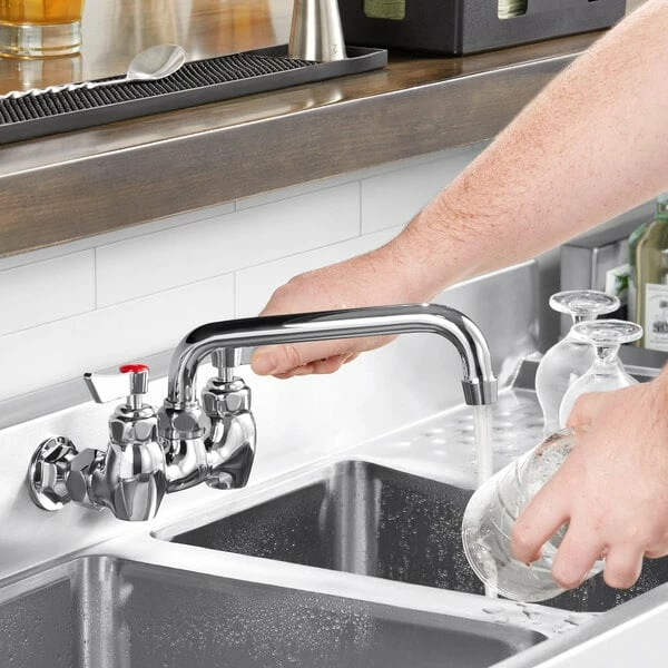 Waterloo 1.15 GPM Wall-Mounted Pre-Rinse Faucet With 8″ Centers And 14″ Add-On Faucet